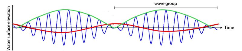 Revision as of 11:06, 21 April 2025 by Dronkers J (talk | contribs) (Wave group envelope (green) and infragravity wave (red).)