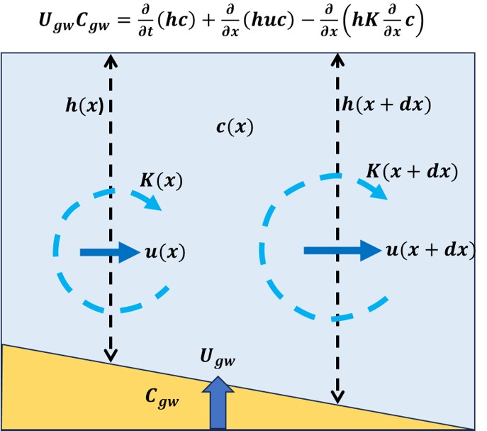 | 12:34, 14 December 2025 | GroundwaterTracerBalance.jpg (file) | 53 KB | Dronkers J | Determination of the SGD (fresh+salt) by measuring tracer concentrations <math>c(x)</math> and using the balance equation explained in the figure. | 1 | |