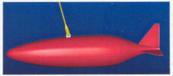 This instrument (Figures 4a and 4b) is a streamlined body that draws a sediment-laden stream into it for Laser measurements. It incorporates a Laser, optics, multi-ring detector identical to the LISST-100 and electronics for signal amplification and data scheduling and transmission. A pump is also built-in to ensure isokinetic withdrawal rates. The pump is controlled by a microprocessor, which is fed information about the river velocity by a propeller type current meter to ensure isokinetic velocity sampling. The propeller is mounted above the body itself and a sensor is employed to count the number of its rotations in a short period of time. This device includes pressure transducers to record the depth of sampling. The LISST-SL has been designed to provide real-time data on sediment concentrations and particle-size distributions. The velocity and concentration data are used to compute fluxes (on-line) for up to 32 particle size classes at points, verticals or in the entire stream cross-section (Gray, 2004).