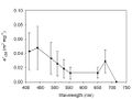 Partitioning of in situ measurements of total IOPs into the contributions of different classes of optically significant material usually requires ancillary measurements. The proportion of the total absorption coefficient due to dissolved material can be determined by filtering water samples through a 0.2 μm membrane filter. Phytoplankton pigment absorption can be separated from detrital absorption by collecting suspended material on a glass fibre filter and bleaching or extracting the pigments. The greatest difficulty is the partitioning of the scattering and backscattering coefficients between phytoplankton and mineral particles. Since the two constituents cannot be physically separated, their contribution to scattering is usually estimated using statistical regression techniques. The calculation of absorption coefficients for materials collected on glass fibre filters requires the determination of a ‘path length amplification factor’. There are several published approaches to determining this factor, and the most widely adopted is probably that of Bricaud and Stramski (1990[1]). It is also possible to determine the conversion factors empirically by direct comparison with ac-9 measurements carried out at the position from which the sample was taken. Figures 6 and 7 show the results obtained using these procedures for an extensive data set from the Irish Sea, British Channel and coastal waters of SW Scotland. The data points show average values in ac-9 wavebands, and the error bars indicate standard deviations.