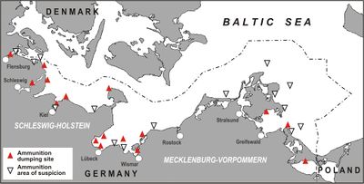 [[image:Fig-1_german-coast.jpg|thumb|450px|right|Figure 1: Dumping sites and areas of suspicion concerning dumped ammunition at the German Baltic Sea coast]]