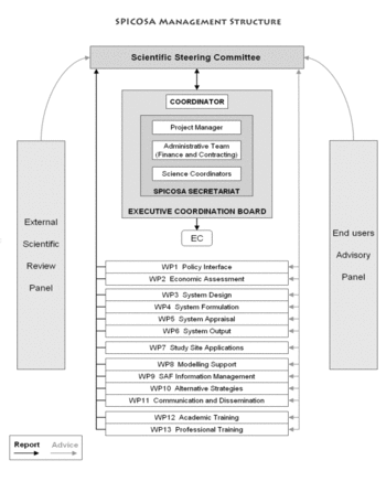 | + | [[Image:SPICOSA_MGMT.gif|350px|border|thumb|centre|Figure: SPICOSA Management structure]] <br style="clear:both;"/> | ||
