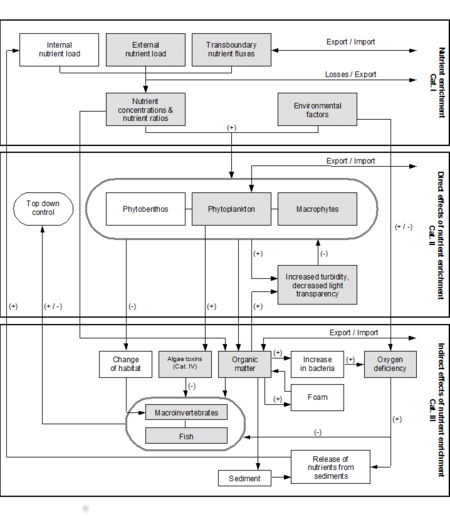 | − | [[Image:COMPPpar.png|thumb|right| | + | [[Image:COMPPpar.png|thumb|right|450px|<small>Generic conceptual framework to assess eutrophication in all categories of surface waters ©OSPAR (Common Procedure for the Identification of the Eutrophication Status of the OSPAR Maritime Area |