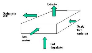 Sand mining in rivers is a major cause of coastal erosion in many countries, such as Sri Lanka. The supply of sand to the coast Qcoa from a river depends of many parameters and there is no simple correlation between sand mining and decrease in supply to the coast. However, in general there are five components in the sediment balance for a degrading river section, refer the illustration in Fig. 3. on sediment balance for a river segment.