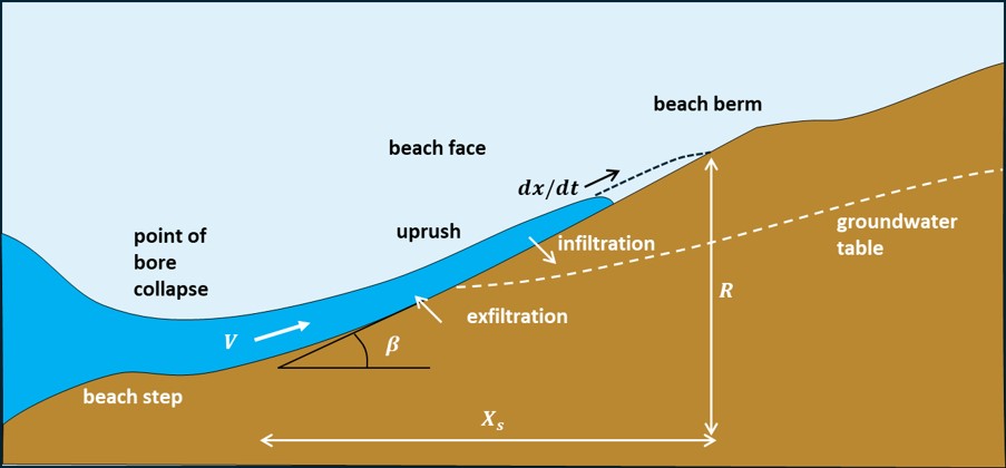 Schematic representation of swash uprush on the beach face.