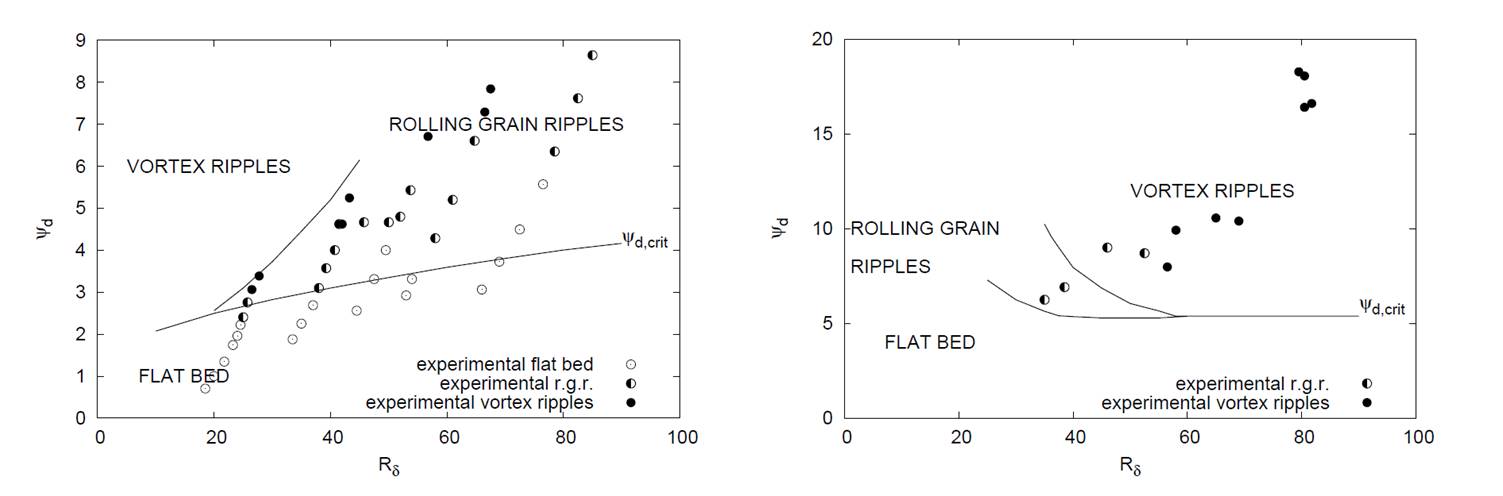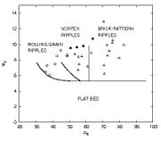 | 10:15, 3 July 2017 | WaveRippleFormationFig5ab.jpg (file) | 53 KB | Regions in the <math>(R_\delta,\psi_d)</math>-plane where a flat bed, rolling-grain ripples, and vortex ripples are expected to appear. Comparison between the theoretical predictions and the laboratory observations. | 1 | |