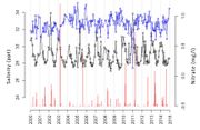 | 15:48, 10 June 2020 | AlgaeBloomTerschelling.jpg (file) | 289 KB | Multi-annual observation record of the alga ''Chaetoceros socialis'' at a measuring point in the North Sea 10 km north of the Dutch Wadden island of Terschelling. Simultaneous measurements of the local nitrate concentration and surface salinity. From W... | 1 | |