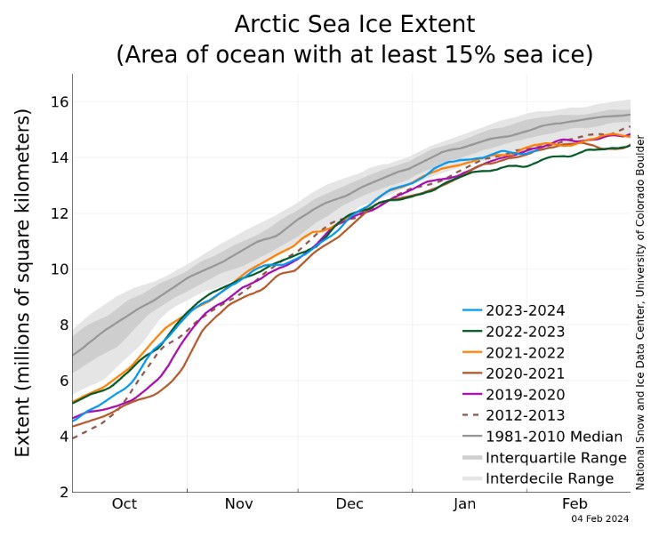 | 18:03, 22 February 2024 | ArcticIceCover.jpg (file) | 77 KB | Arctic sea ice extent for several years between 2012 and 2024 compared to the average extent over the period 1981-2010. The gray areas around the median line show the interquartile and interdecile ranges of the data. Image credit National Snow and Ice... | 1 | |