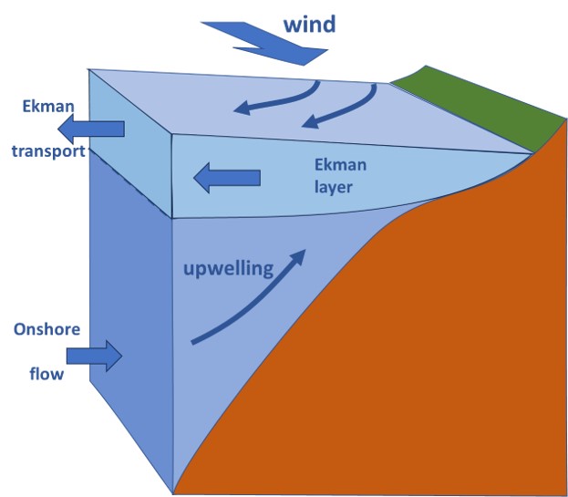 | 13:38, 20 June 2024 | EkmanTransport.jpg (file) | 34 KB | EkmanTransport.jpg Alongshore wind (coast at the left in the Northern hemisphere) produces offshore Ekman transport in the upper Ekman layer. This offshore transport is compensated by onshore flow at depth and upwelling. | 1 | |