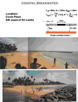 Fig 4. Coastal breakwater, which has formed a tombolo, Covis Place, Sri Lanka. X* = 1.0.