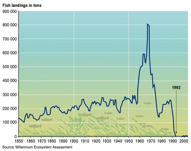 Collapse of Atlantic Cod Stocks Off the East Coast of Newfoundland in 1992.