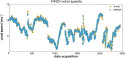 The validation has shown that WiRAR is an ideal instrument tmeasure wind vectors with an accuracy of ~0.5 ms-1 in speed and ~13° in direction. In contrast to traditional offshore wind sensors, the retrieval of the wind vector from the NRCS of the ocean surface makes the system independent of the sensor’s motion and installation height as well as of the effects due to platform-induced turbulence. With the preexisting installations of radar systems on marine structures, harbours, platforms, and ships, the measurements can be acquired in a very cost-efficient way.- ↑ 1.0 1.1 Dankert, H. & Horstmann, J. (2007). A Marine Radar Wind Sensor. Journal of Atmospheric and Oceanic Technology, 9 (9), 1629-1642.