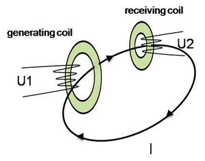 Electrodeless conductivity sensors use inductive coils. The inductive conductivity sensor consists of two coils which are incorporated next to one another in a polymer or ceramic body. These coils form a current transformer. The sensor is designed so part of the liquid media forms a closed conductive current path passing through the coils. Current is applied to the primary coil, which induces an alternating voltage in the liquid loop. In liquids which conduct electricity, this causes a current flow captured by the second coil, which is proportional to the conductivity of the sample solution.