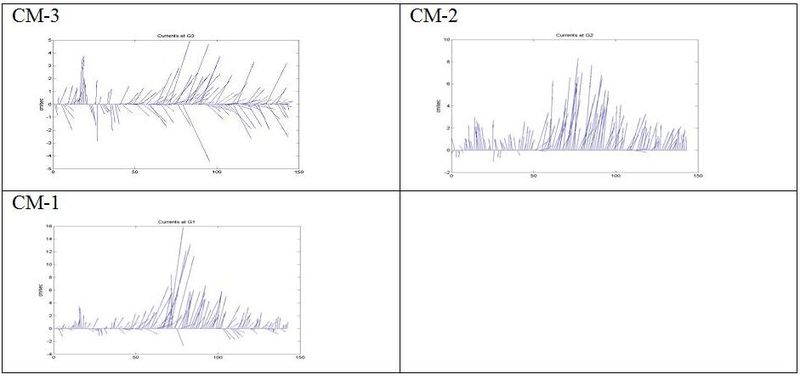 | current | 15:10, 22 March 2007 | 941 × 447 (36 KB) | Kpavlop (talk | contribs) | Figure 6. Current directions and speeds for each station G1 (inshore), G2, and G3 (offshore) during the study period. Values on the ‘x’ axis refer to time in hours from the starting time of 15:52 on the 24th July 2003 |