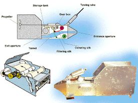 The CPR is an instrument used to sample and to continuously collect plankton over a long distance at a depth of approximately 10 meters. Water passes through the CPR and plankton are filtered onto a slow-moving band of silk (270 micron mesh size) and covered by a second silk. The silk and plankton are then spooled into a storage tank containing formalin. The silk is divided into samples representing 10 nautical miles of tow. Analysis is done in two ways: