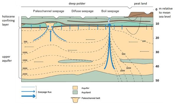 - ↑ De Louw, P.G.B., Oude Essink, G.H.P., Stuyfzand, P.J. and Van der Zee, S.E.A.T.M. 2010. Upward groundwater flow in boils as the dominant mechanism of salinization in deep polders, The Netherlands. Journal of Hydrology 394: 494-506