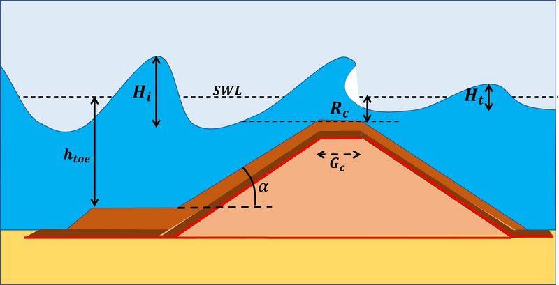 Revision as of 22:46, 30 October 2024 by Dronkers J (talk | contribs) (Wave transmission over a low-crested breakwater and mathematical symbols.)