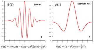 The mother wavelet functions of Morlet and Ricker (also called 'Mexican hat').