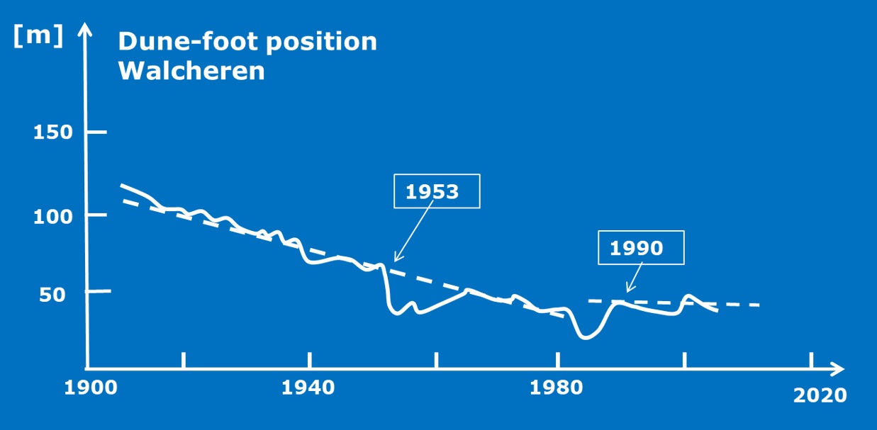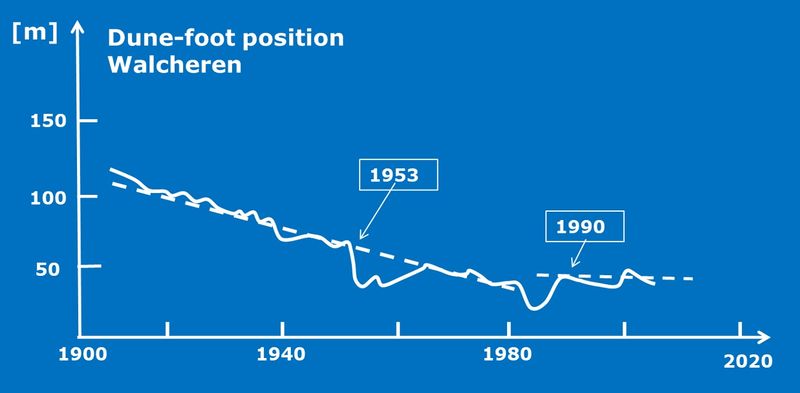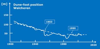 Variation of the dune foot position in a beach transect of the island Walcheren (Netherlands) over the period 1900-2010.