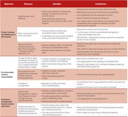 Benefits and limitations of different coastal protection measures.