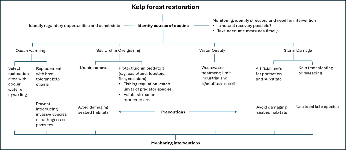 Process scheme of recommended actions and interventions for kelp forest restoration