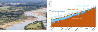 current19:19, 16 June 2023Thumbnail for version as of 19:19, 16 June 20234,235 × 1,390 (632 KB)Dronkers J (talk | contribs)Channel incision Loire tidal river. Left panel: Groins in the Loire tidal river near Anetz. Photo credit GIP Loire Estuaire. Right panel: Lowering of the river bed along the thalweg due to channel constriction. Redrawn from VNF (2019).