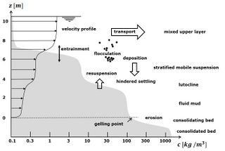 Schematic representation of suspended sediment layers in a turbid estuary.