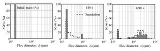 Development of bimodal macrofloc diameter distribution from uniform microflocs.
