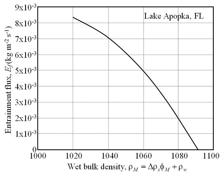 Dependence of fluid mud entrainment flux on wet bulk density.