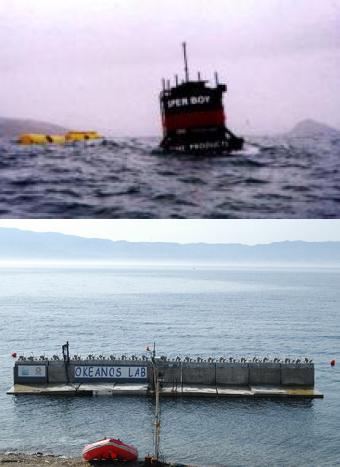 "Sperboy" (above) and REWEC-3 (below): 2 experimental concepts of wave-energy converters based on oscillating water columns