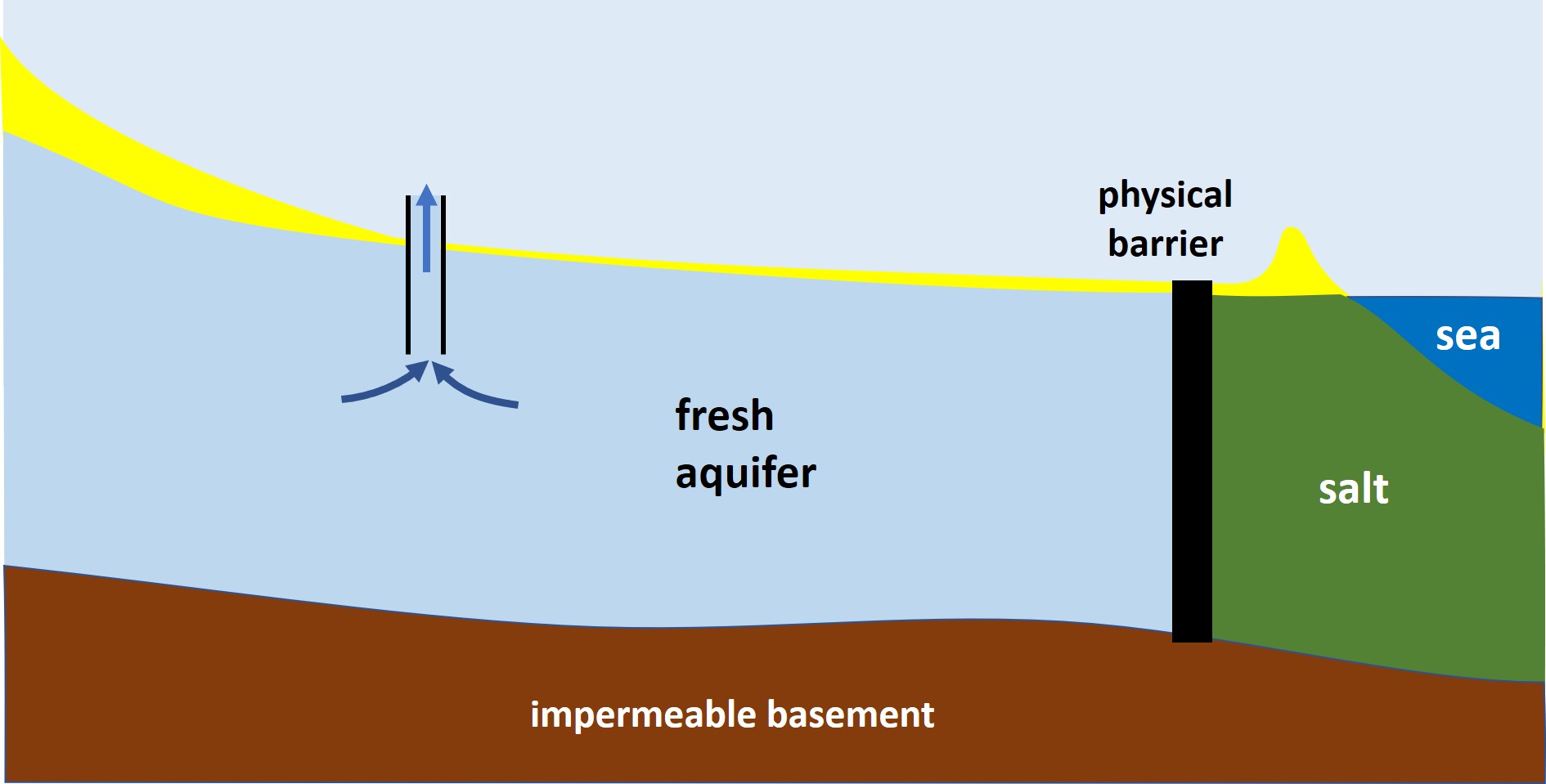 Schematic representation of a physical barrier at the seaward entrance of an aquifer.