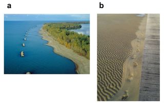 current13:07, 16 May 2017Thumbnail for version as of 13:07, 16 May 20171,073 × 674 (75 KB)Dronkers J (talk | contribs)Left: Rhythmic shoreline features forced by a breakwater system. Right: Picture taken at the Arcachon bay and it shows ripple marks and shoreline undulations at low tide.