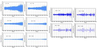 Left panel: Spectral bands with water wave components. Right panel: Spectral bands with residual slow-varying components.