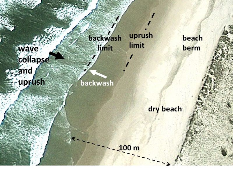 Swash zones, Portuguese coast. Google Earth image.