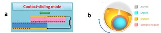 Principle of tribo-electric nanogenerators. (a) Laterally sliding dielectric films (b) Soft contact rolling-mode spherical TENG (SS-TENG). From Huang et al. (2020), Creative Commons licence.