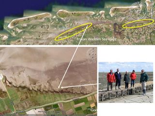 Dikes along the Wadden Sea are protected by marshland created by stimulating natural sedimentation through fences of braided willow twigs.